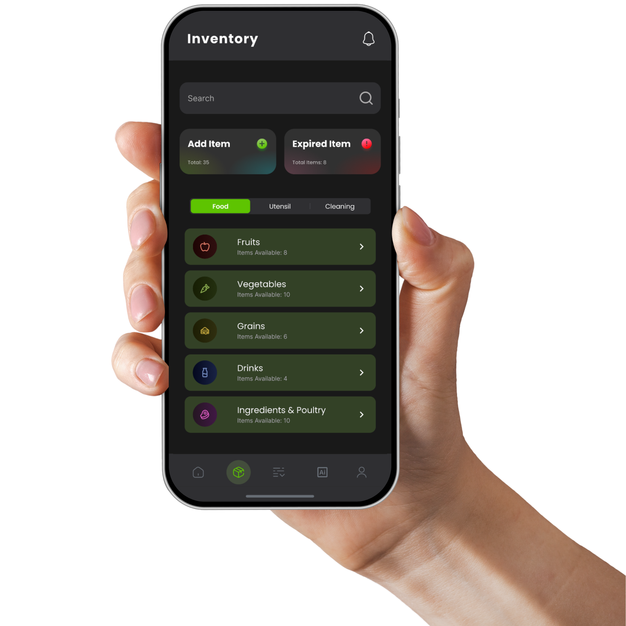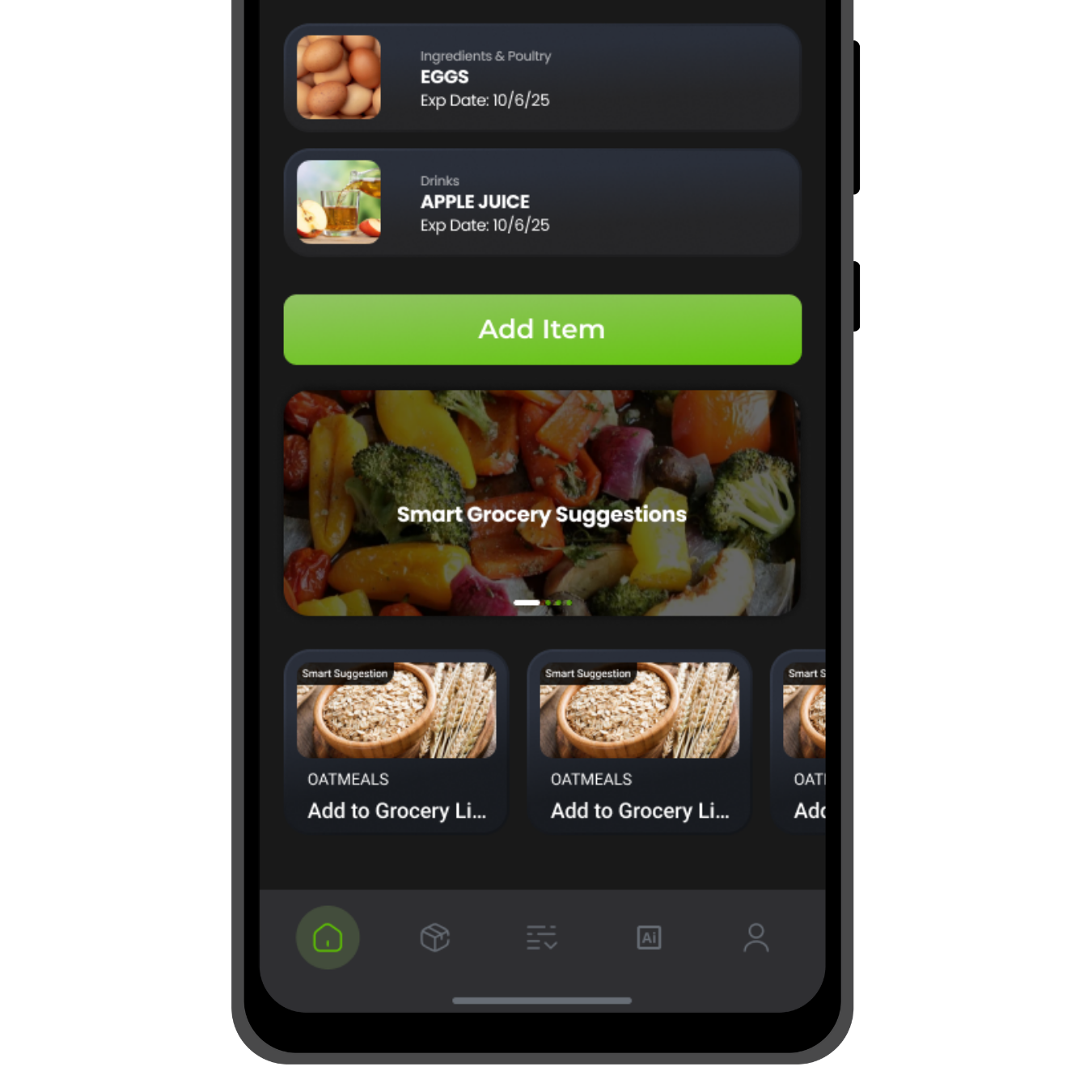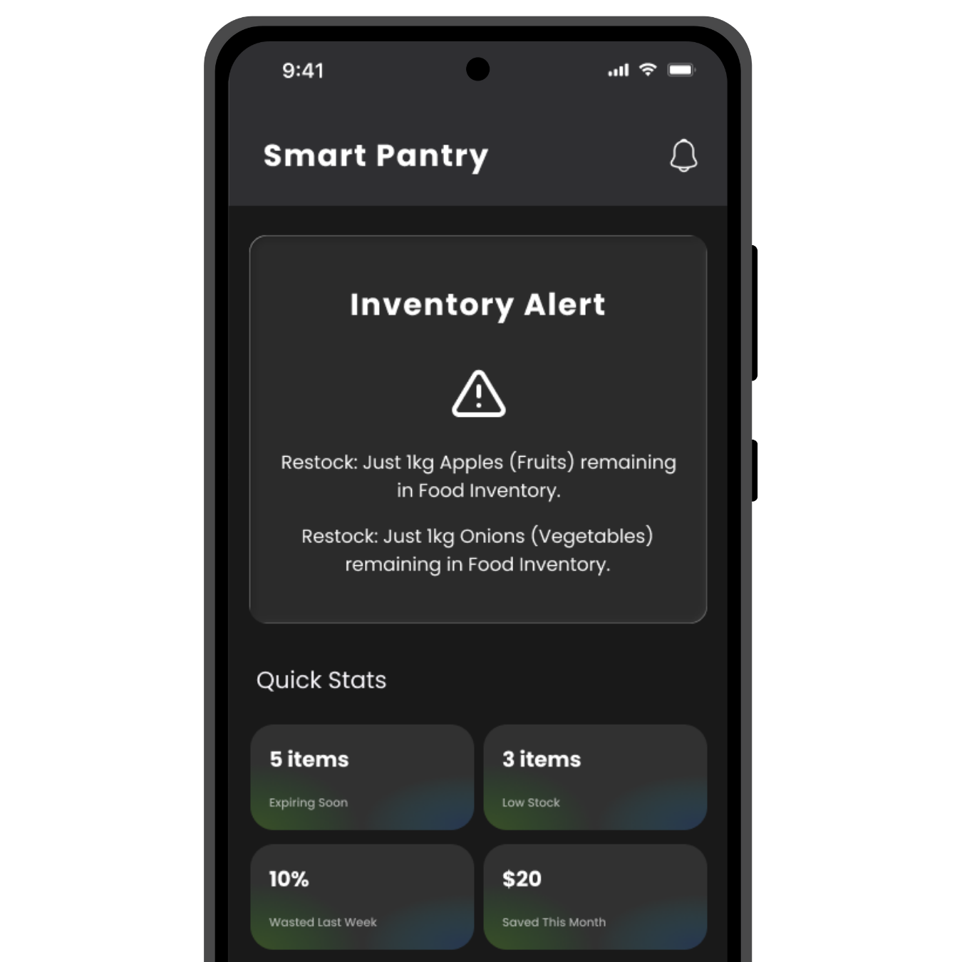 Smart reminders and AI-powered suggestions make your kitchen management effortless.