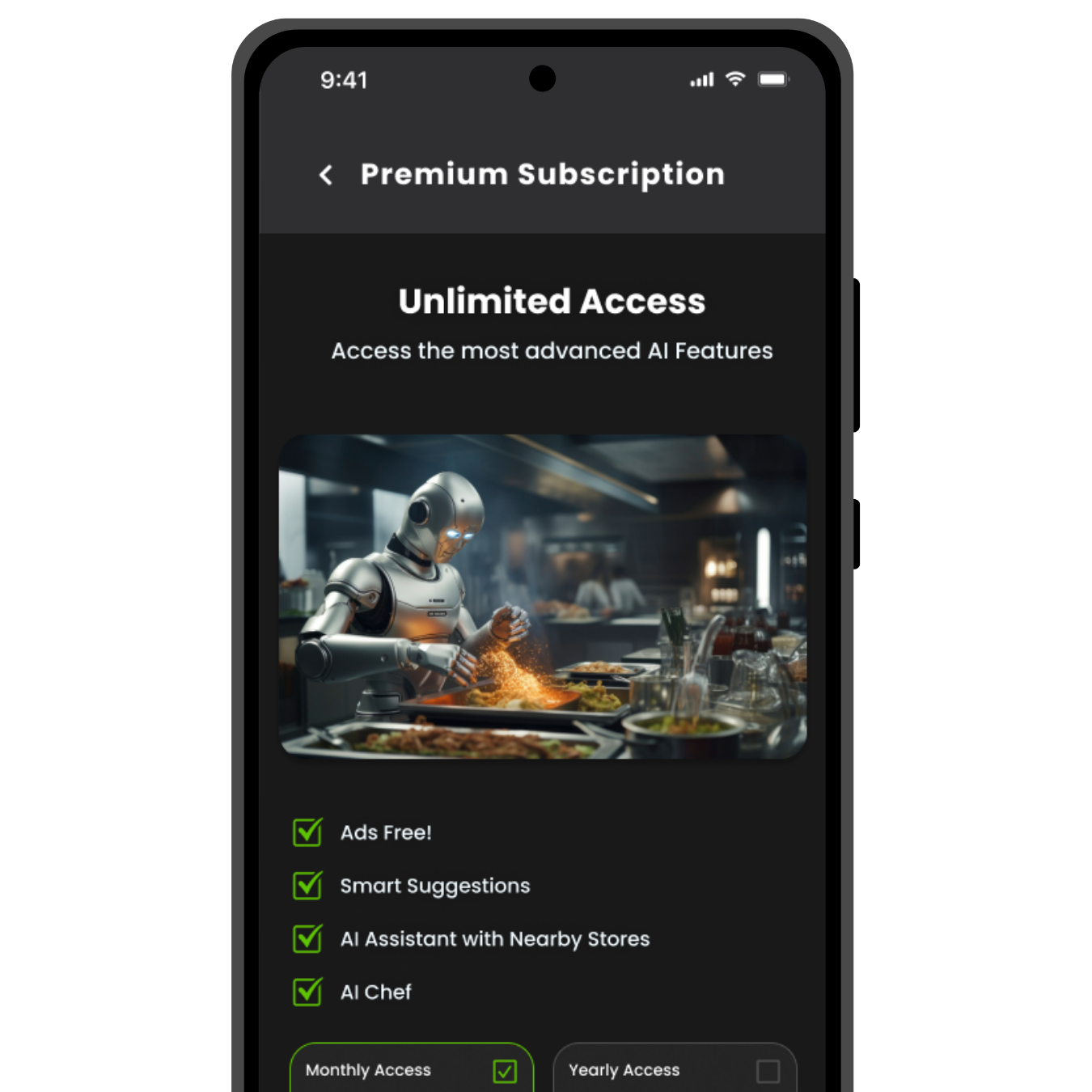Smart Suggestions, AI Assistant with Nearby Stores, and AI Chef are premium.